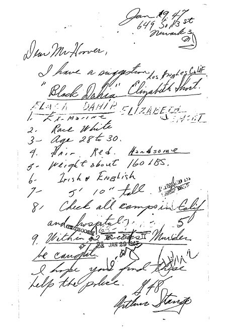 1) The FBI's photocopy of Elizabeth Short's mugshot after her arrest for underage drinking: